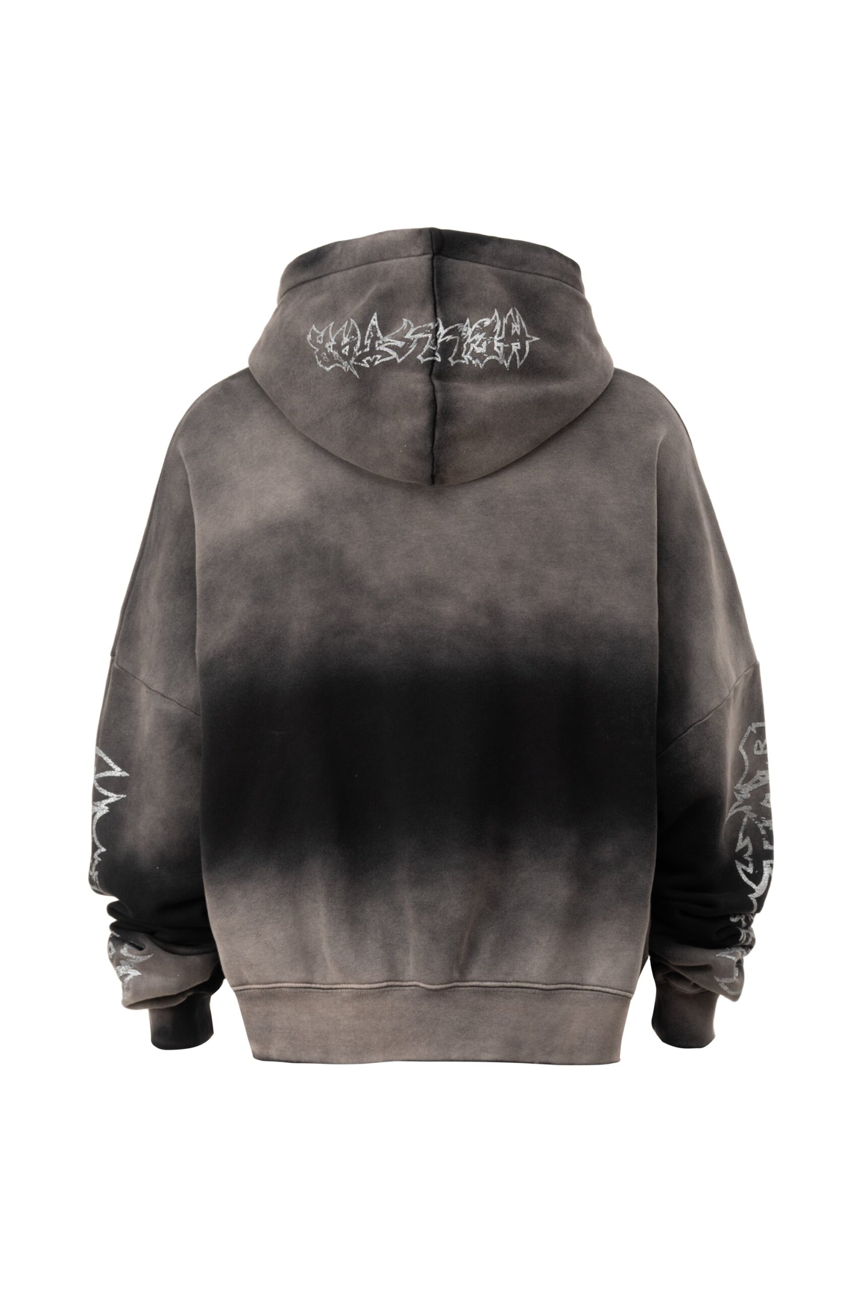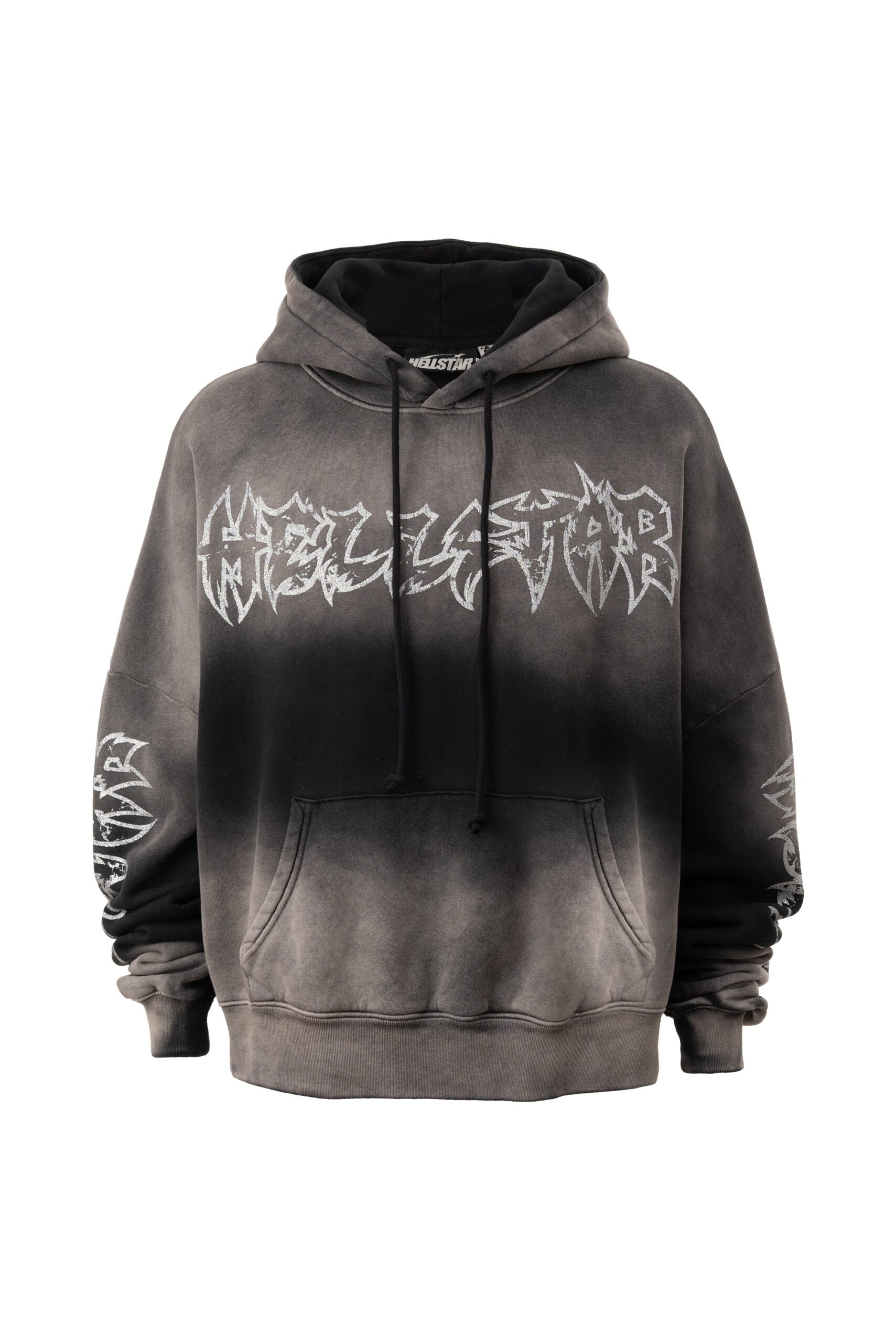 Heavyweight cotton fleece with the metal logo graphic applied to the chest and back. The SS26 metal logo is a refinement of Hellstar’s branding — more structured than the earlier hand-drawn flame and space graphics, carrying an industrial quality that references metal music culture as much as it references streetwear. Oversized relaxed fit. Ribbed cuffs and hem.